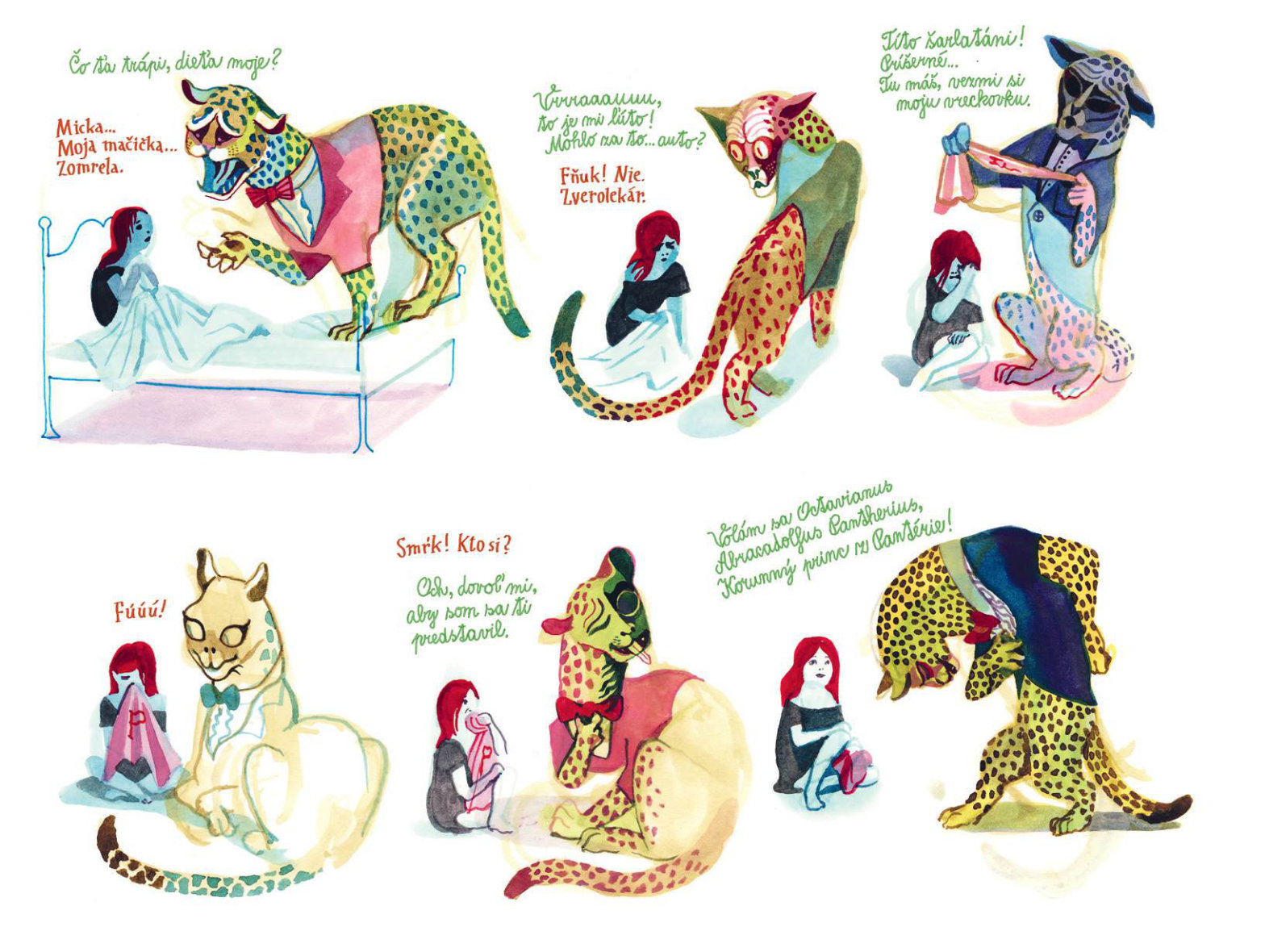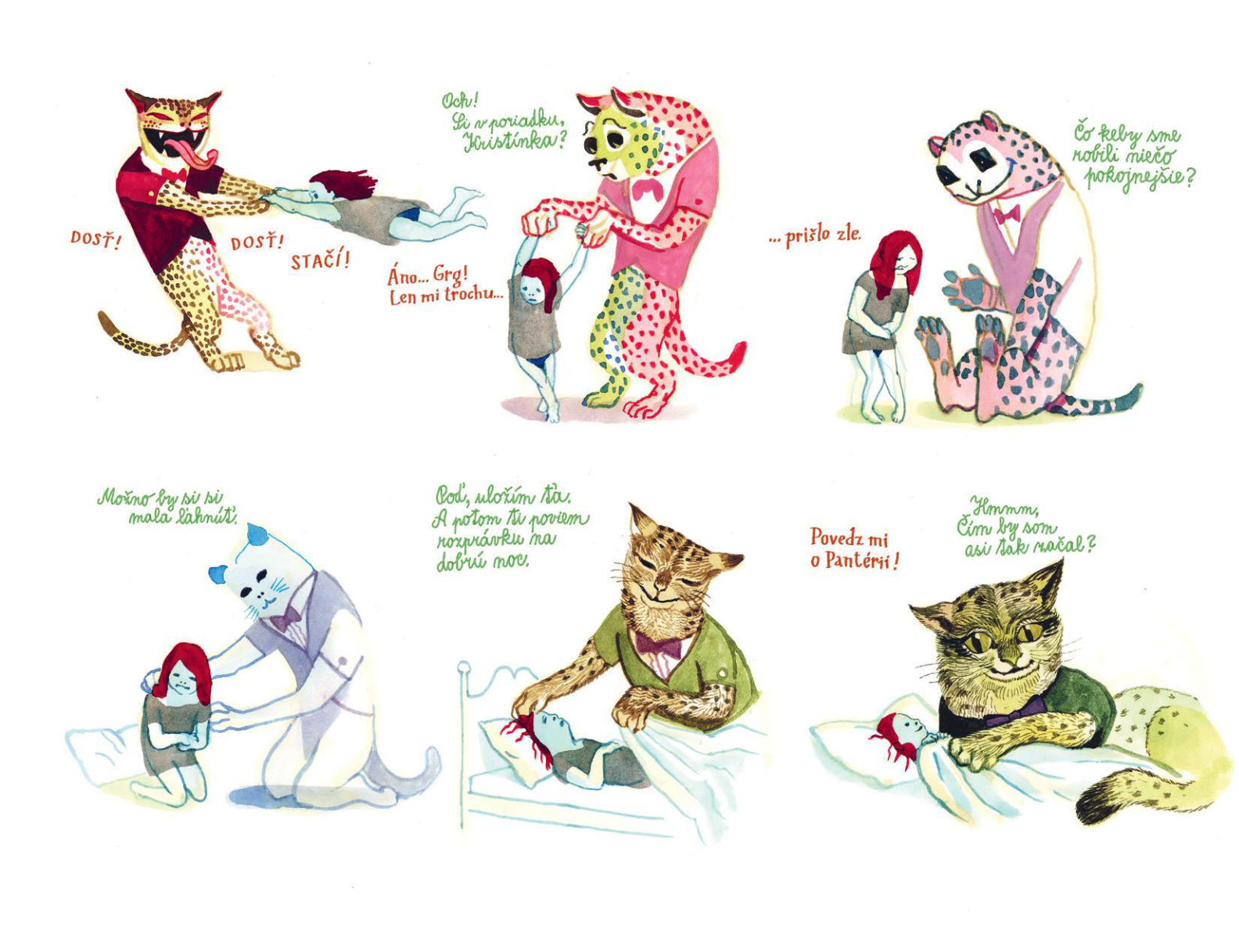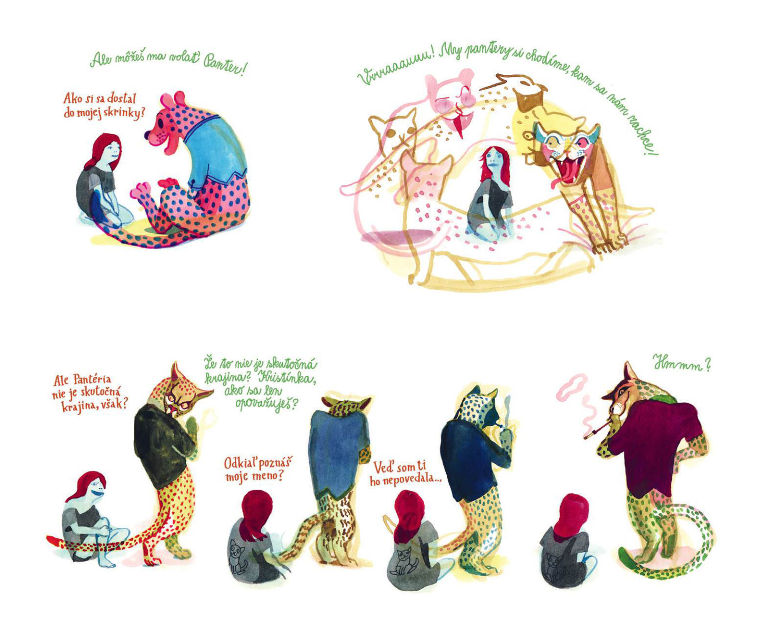 Keď malá Kristínka príde o svoju milovanú mačku, stane sa čosi nezvyčajné: zo zásuvky komody v jej detskej izbe vyskočí tajomný pestrofarebný hovoriaci panter. Kristínku si získa veselou povahou a rozprávaním o magickej Pantérii. No čím viac sú spolu, tým viac sa Kristínka vzďaľuje svojim blízkym a svetu, ktorý mala rada. Oceňovaný belgický autor Brecht Evens vytvoril vizuálne strhujúce dielo, ktoré pod vrstvou žiarivých farieb odhaľuje temnejšie stránky ľudskej psychiky a traumatickú povahu manipulatívnych vzťahov.