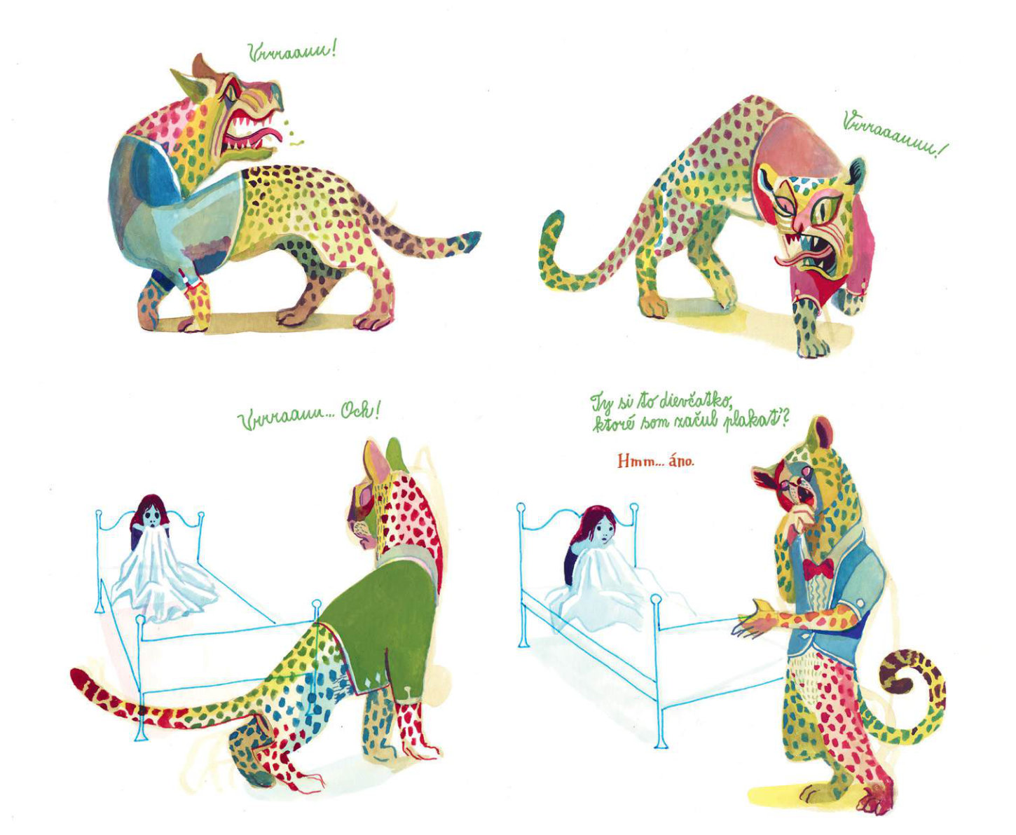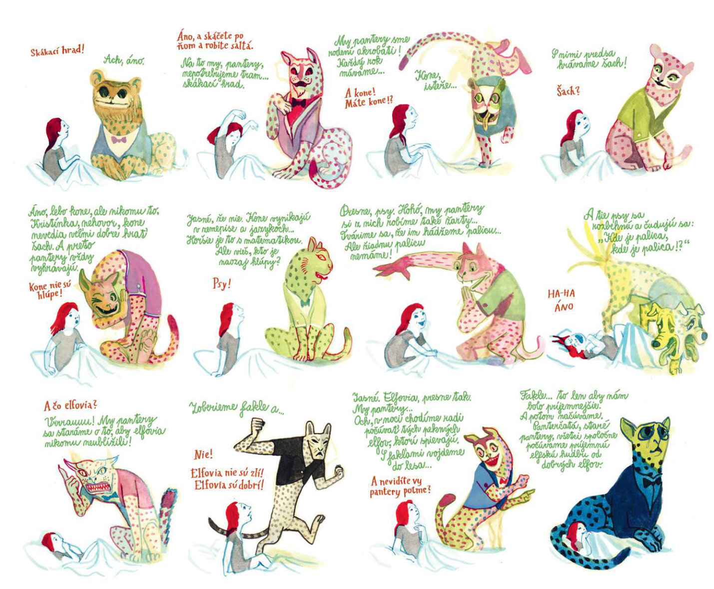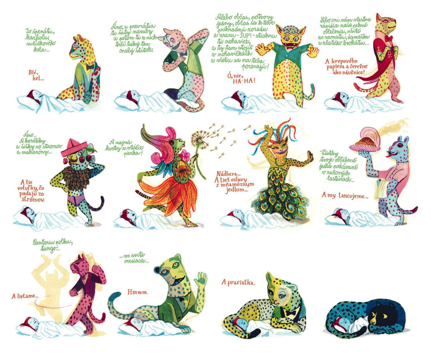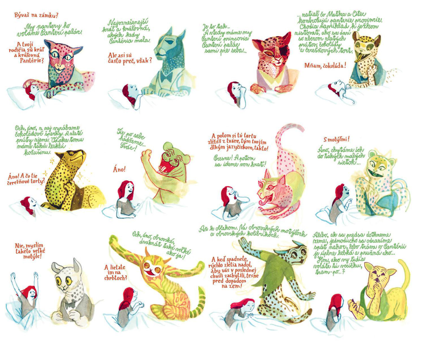 Keď malá Kristínka príde o svoju milovanú mačku, stane sa čosi nezvyčajné: zo zásuvky komody v jej detskej izbe vyskočí tajomný pestrofarebný hovoriaci panter. Kristínku si získa veselou povahou a rozprávaním o magickej Pantérii. No čím viac sú spolu, tým viac sa Kristínka vzďaľuje svojim blízkym a svetu, ktorý mala rada. Oceňovaný belgický autor Brecht Evens vytvoril vizuálne strhujúce dielo, ktoré pod vrstvou žiarivých farieb odhaľuje temnejšie stránky ľudskej psychiky a traumatickú povahu manipulatívnych vzťahov.